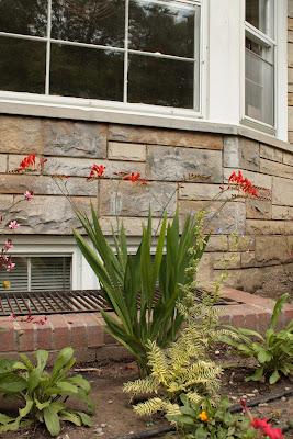 Here is my favorite plant. The crocosmia is the plant in the middle with the bird like flowers. Here’s a close up: