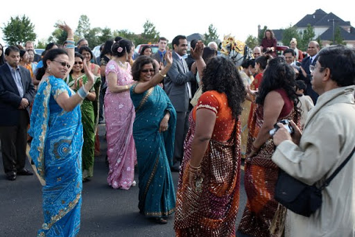 Following the wedding, there were a few hours of mingling and appetizer eating, then the reception began, there were several more hours of talking, dancing, performances, and toasts, followed by more dancing, talking, and general waiting by most of us, until dinner was served at 10:30. The food was delicious. The bride wore yet another saree to the reception. (Three sarees in all.) After dinner the real dancing started but by then I was so beat that we headed home.